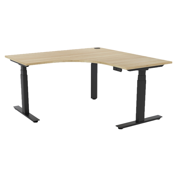 KNIGHT AGILE HEIGHT ADJUSTABLE WORKSTATION ELECTRIC 3 STAGE W1500 X W1500 X D700 X H640-1290MM BLACK FRAME ATLANTIC OAK TOP