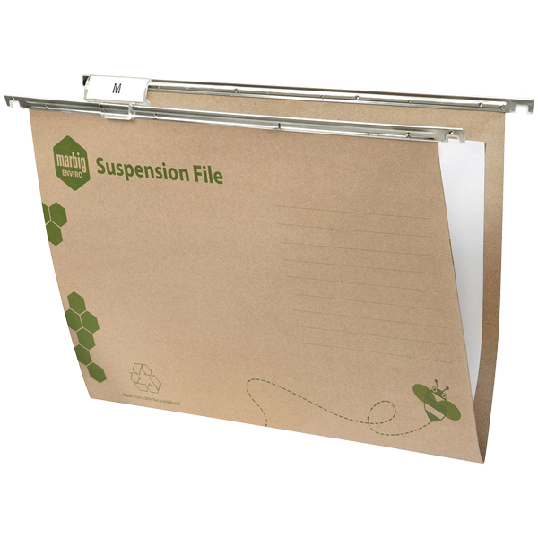 The Marbig Enviro suspension files come complete with tabs and inserts and is made from 100% recycled board and is 100% recyclable