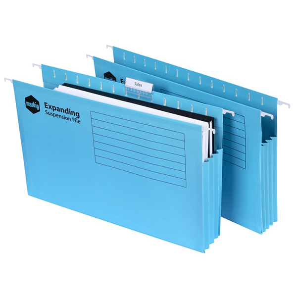 The marbig expanding suspension files come complete with tabs and inserts and are available in blue to colour code your filing