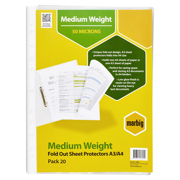 MARBIG MEDIUMWEIGHT COPYSAFE SHEET PROTECTORS FOLD OUT A4 PACK 20