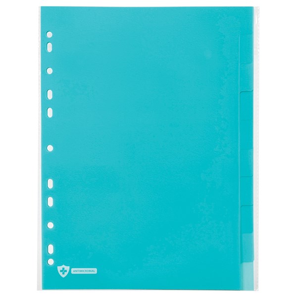 MARBIG PROFESSIONAL ANTIMICROBIAL POLYPROPYLENE A4 5 TAB DIVIDERS BLUE