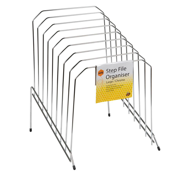 MARBIG STEP FILE WIRE ORGANISER RACK 8 SLOTS LARGE CHROME