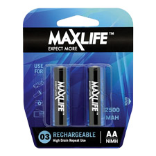 MAXLIFE BATTERY NI-MH RECHARGEABLE 2500MAH SIZE AA PACK 2