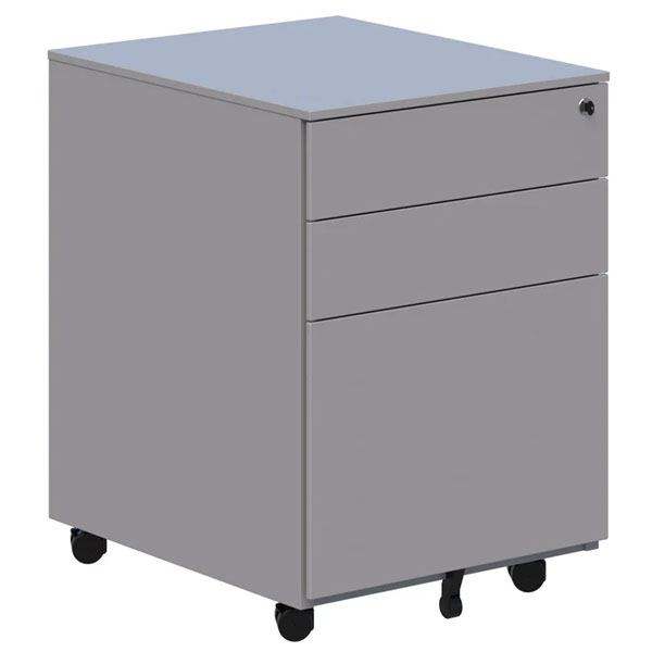 METALICON CUBE PEDESTAL 2 DRAWER 1 FILE POWDERCOAT W410 X D500 X H575MM SILVER