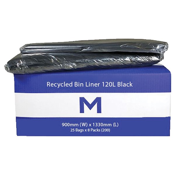 MPH RECYCLED BIN LINER 120L 900X1330MM 30MU BLACK PACK 25