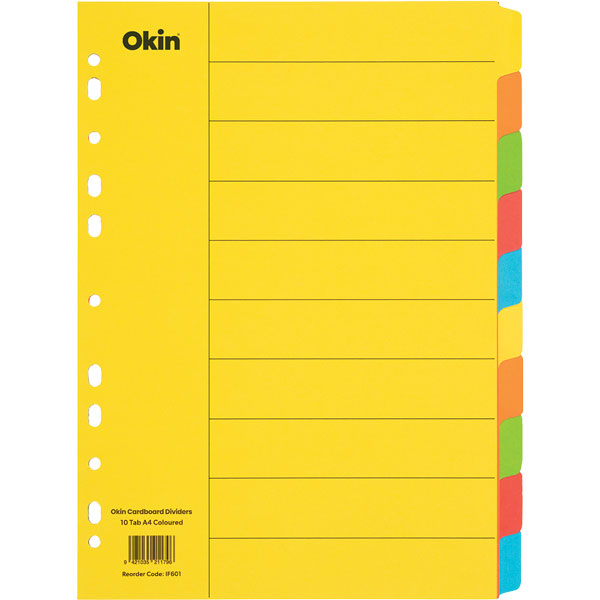OKIN CARDBOARD DIVIDERS 10 TAB A4 COLOURED