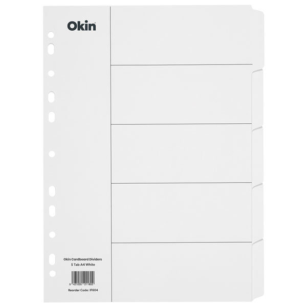 OKIN CARDBOARD DIVIDERS 5 TAB A4 WHITE