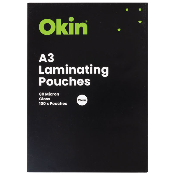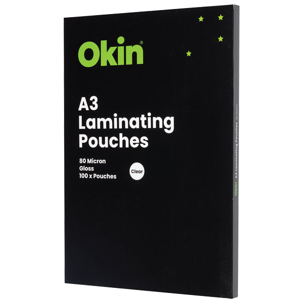 OKIN LAMINATING POUCH A3 80 MICRON GLOSS BOX 100
