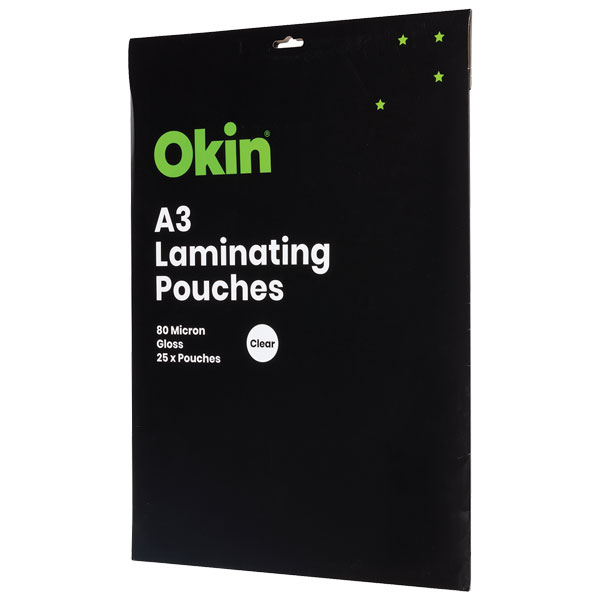 OKIN LAMINATING POUCH A3 80 MICRON GLOSS PACK 25