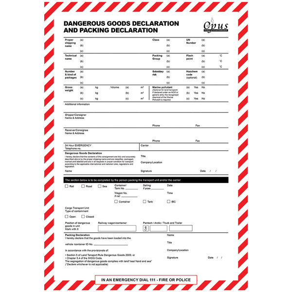 OPUS DANGEROUS GOODS SHIPPING DECLARATION PADS A4 50 LEAF