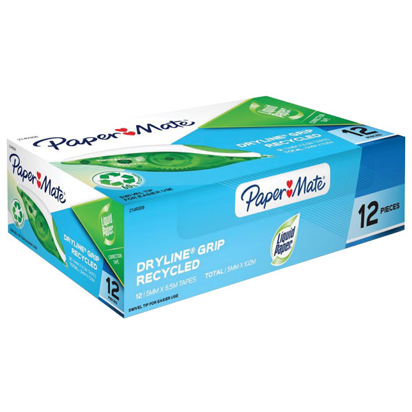 PAPERMATE DRYLINE GRIP RECYCLED CORRECTION TAPE 5MM X 8.5M WHITE