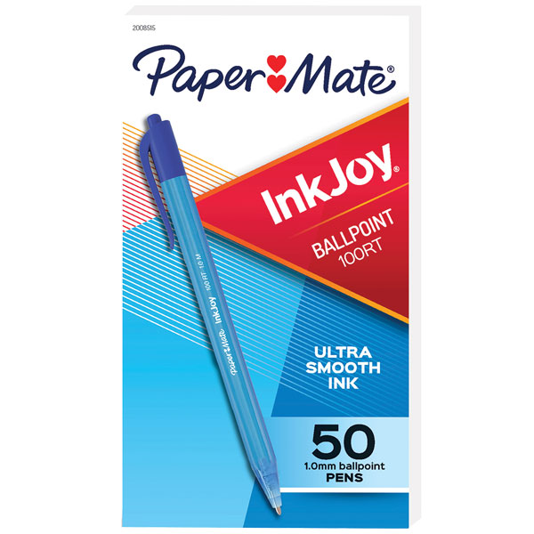 PAPERMATE INKJOY BALLPOINT PEN 100RT RETRACTABLE MEDIUM 1.0MM BLUE BOX 50