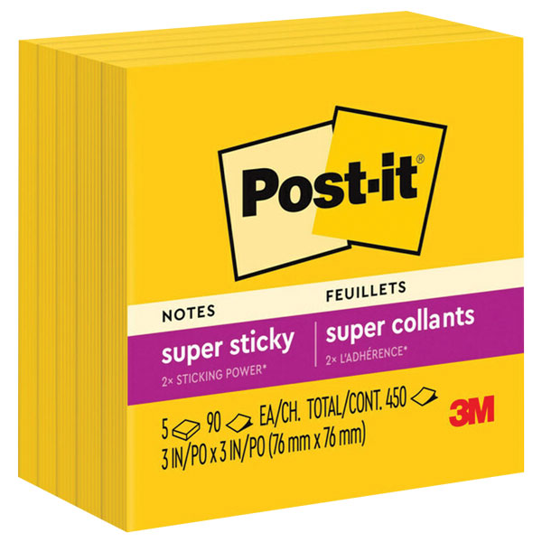 Post-it Super Sticky Notes in 76mm x 76mm size feature 2X the sticking power.