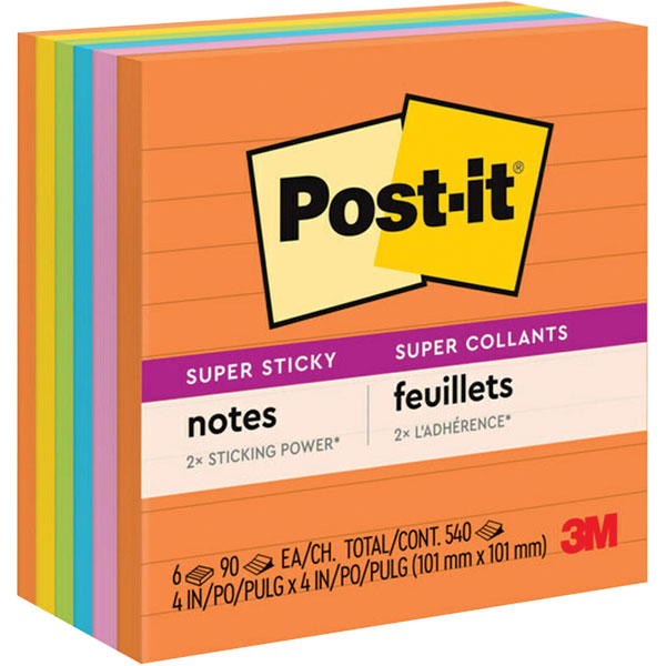 Post-it Super Sticky Lined Notes in 101mm x 101mm size feature 2X the sticking power.