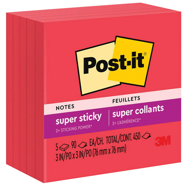 Super Sticky Post-it Notes 654-5SSRR stick practically anywhere! Revolutionary technology ensures your notes will stick securely to most surfaces, yet remove cleanly!