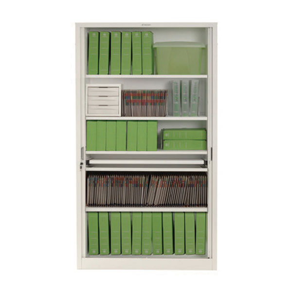 Fully retractable, lockable tambour doors provide a secure and tidy appearance when closed and allow unobstructed access to contents when open