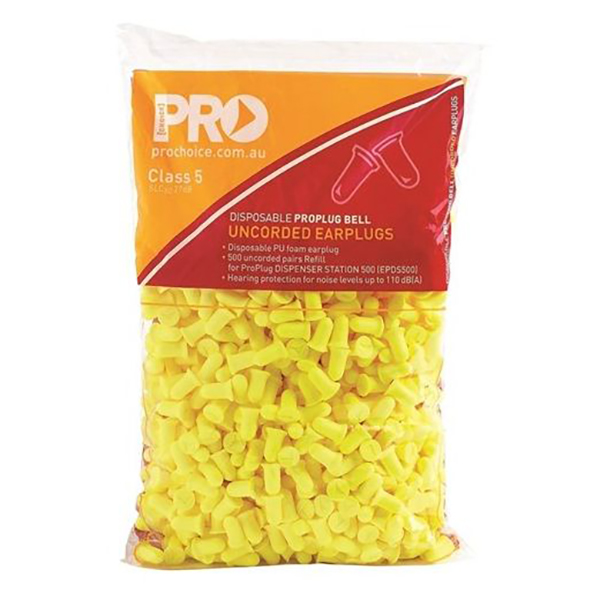 PROCHOICE PROBELL EARPLUGS DISPOSABLE EPYU500R CLASS 5 UNCORDED PAIR YELLOW BAG 500