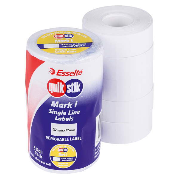 QUIKSTIK MARK I PRICING GUN LABEL REMOVABLE 1500 LABELS/ROLL 22 X 12MM WHITE PACK 5