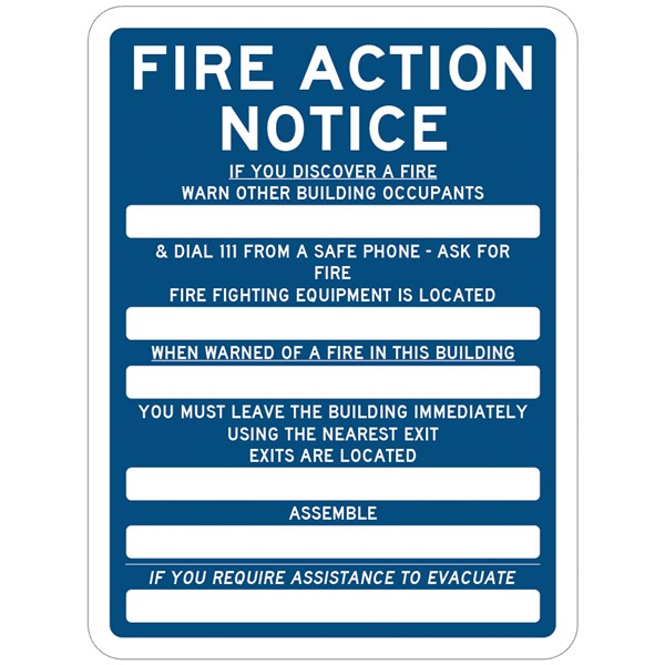 SAFETY SIGN W225 X H300MM FIRE ACTION NOTICE