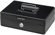 Strong metal cash box for secure storage of cash, valuables, and important documents