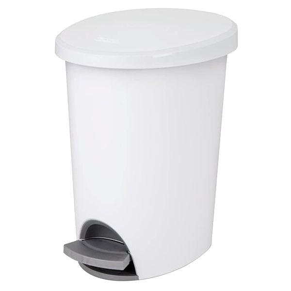 The Step-on wastebasket provides convenient step-on access for hands-free opening.