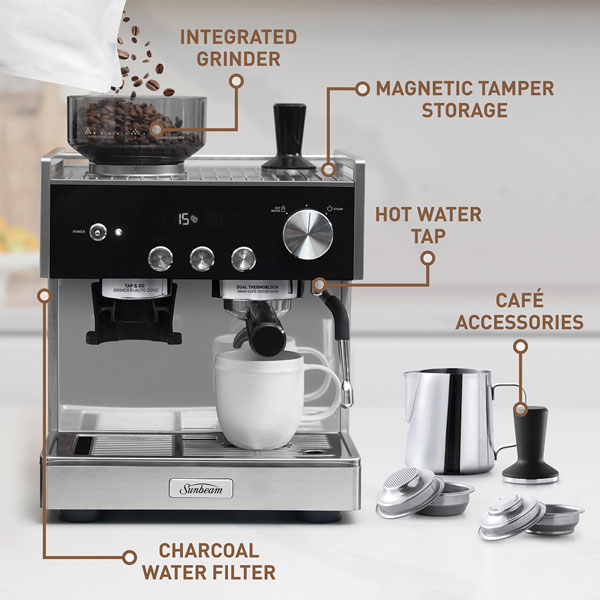 For real coffee drinkers, the Sunbeam Origins Espresso Machine is designed with a 58mm commercial-size group head to give you maximum espresso flavour.