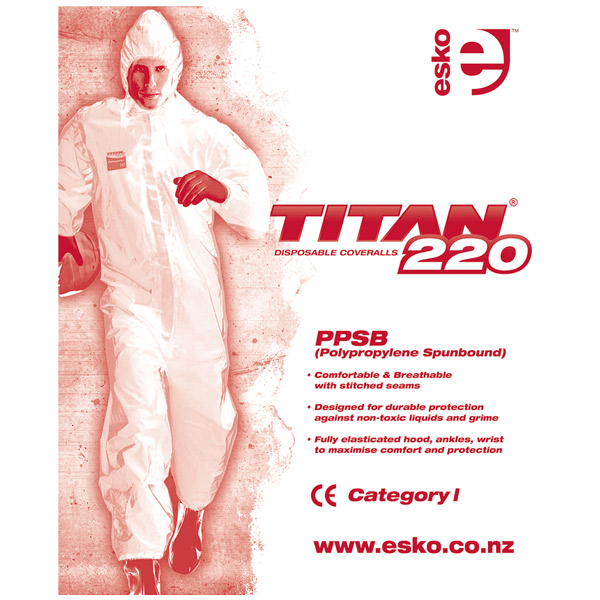 TITAN 220 COVERALL DISPOSABLE POLYPROPYLENE PPSB CE CAT.1 MEDIUM WHITE