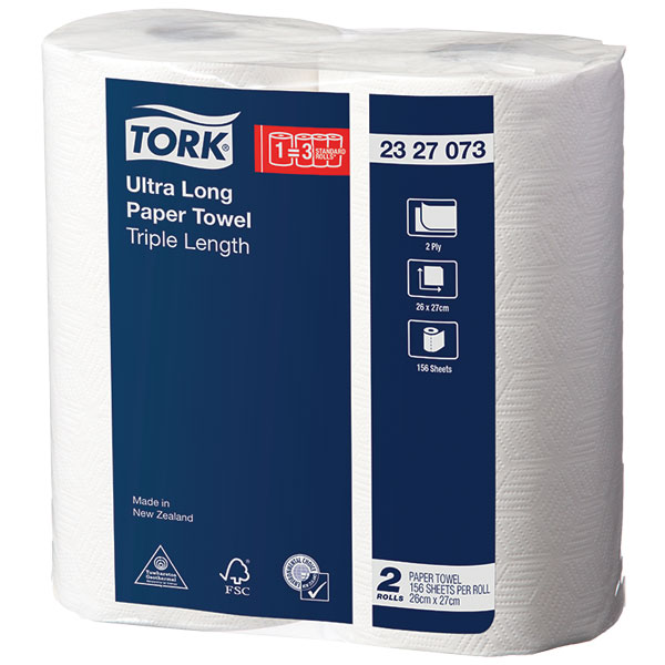 TORK 2327073 PAPER TOWEL ULTRA LONG 2 PLY W260MM X L41M TWIN PACK