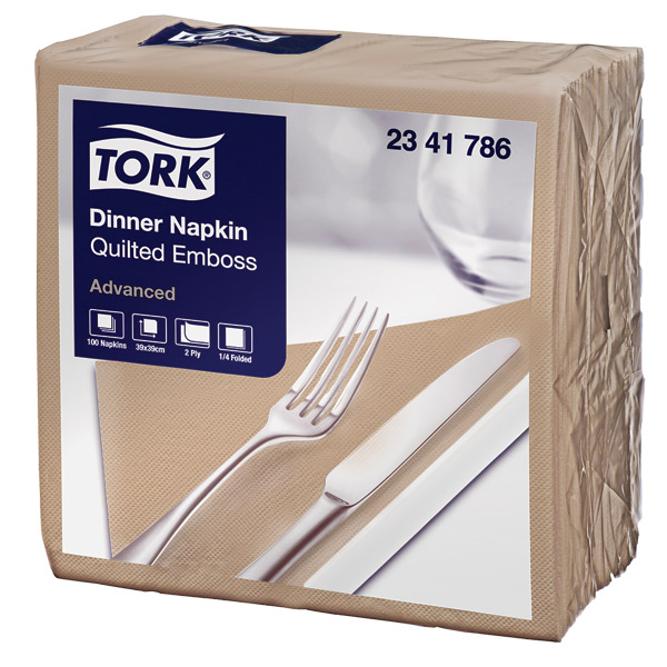 TORK 2341785 PAPER NAPKIN 2 PLY 1/ 8 FOLD W390 X L390MM NATURAL PACK 100
