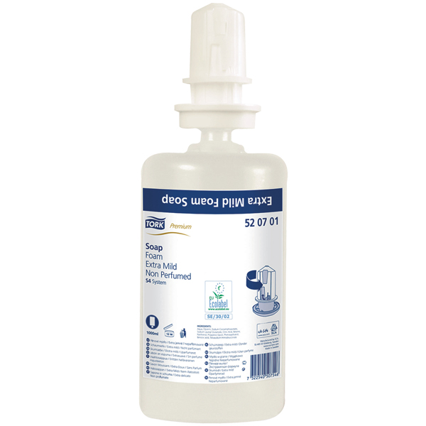 TORK 520701 S4 FOAMING HAND SOAP EXTRA MILD PERFUME AND COLOUR FREE CARTRIDGE 1 LITRE
