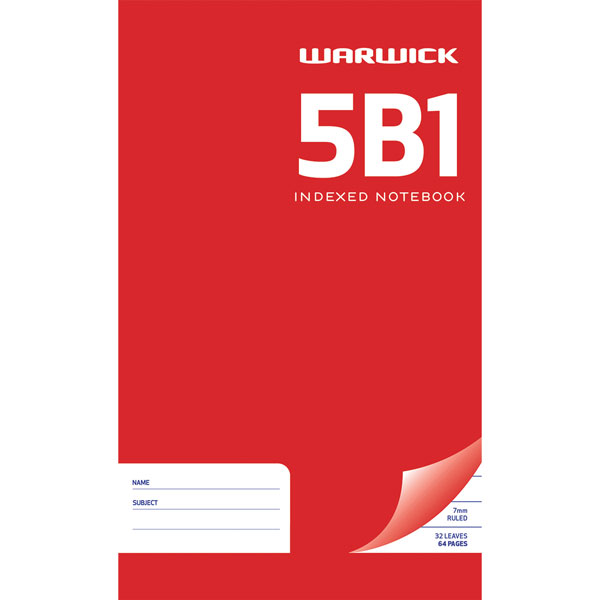 WARWICK 6B1 EXERCISE BOOK 7MM RULED HARDCOVER INDEX W100 X L165MM 62 LEAF