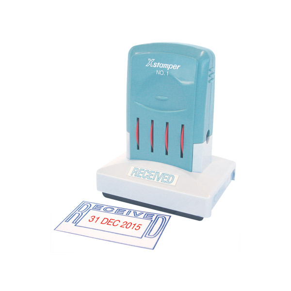 XSTAMPER 66206 MULTI DATER SELF-INKING MESSAGE STAMP RECEIVED 54 X 34MM BLUE/RED