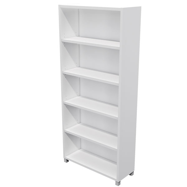 ZEALAND BOOKCASE 4 SHELVES W800 X D300 X H1800MM WITH 50MM FEET WHITE